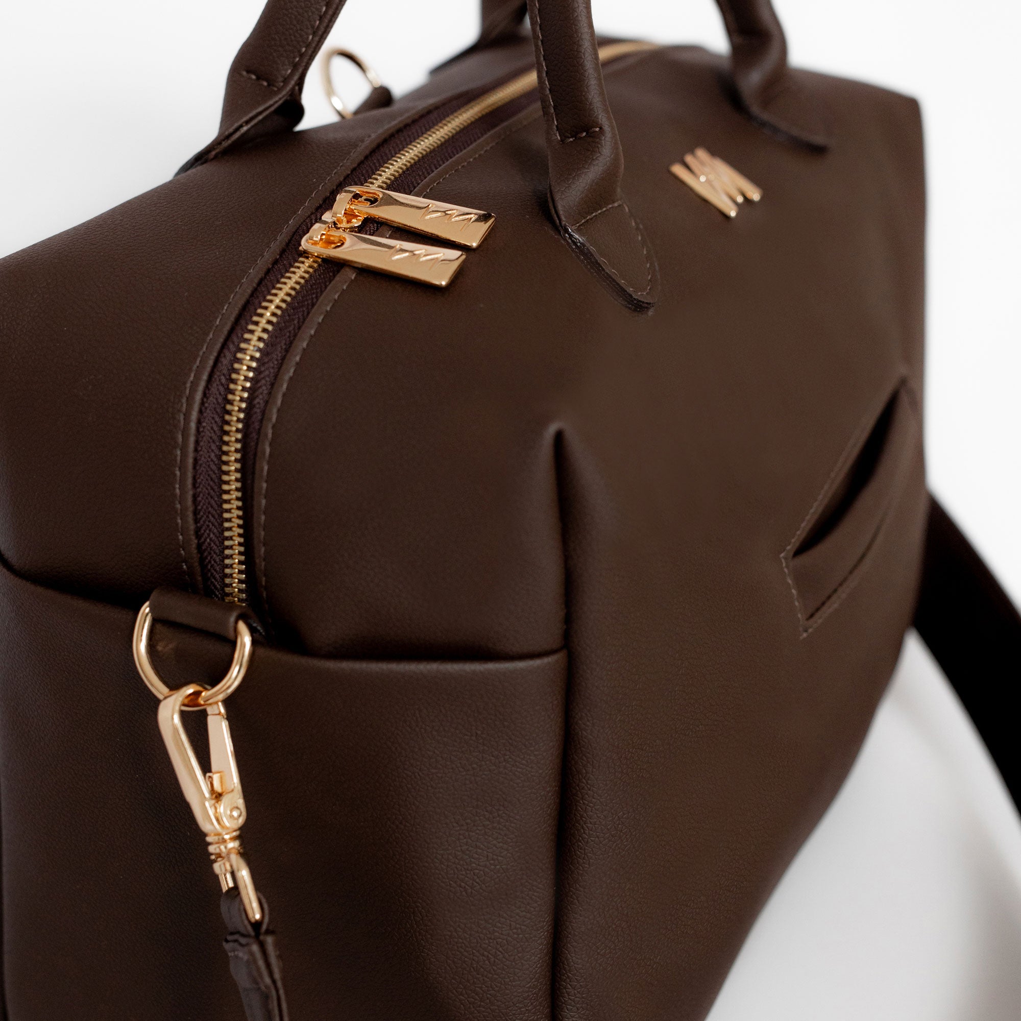 La MADISON Café traduce la maternidad con elegancia y sofisticación. Su tono marrón oscuro es clásico y acogedor, ideal para mujeres auténticas que valoran el estilo y la funcionalidad. Inspirada en Madison Avenue, en Nueva York, este bolso combina un diseño limpio con un acabado premium en cuero sintético.