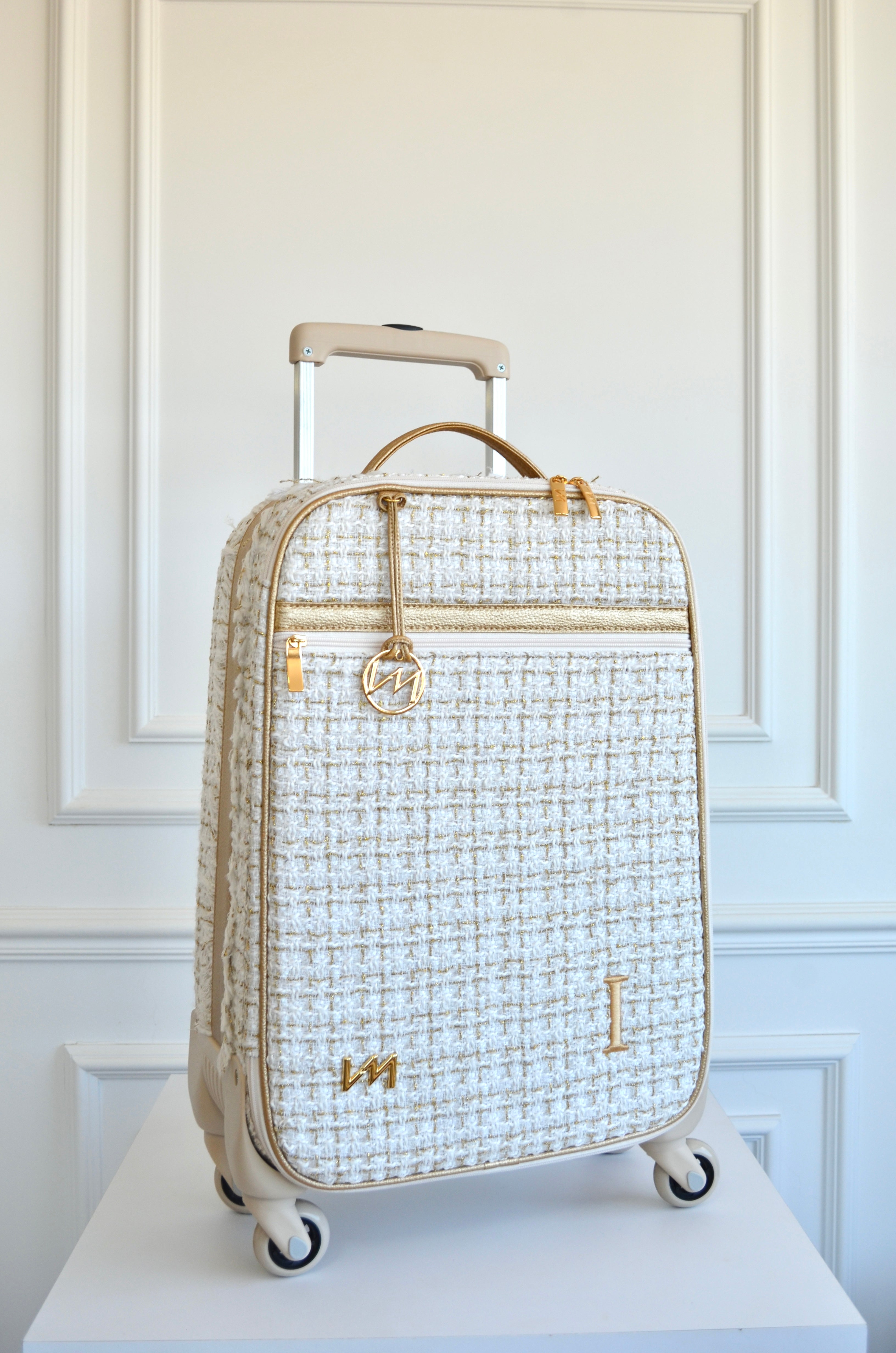 - Maleta con ruedas de tweed beige con inicial I bordada en oro con 30% de descuento.