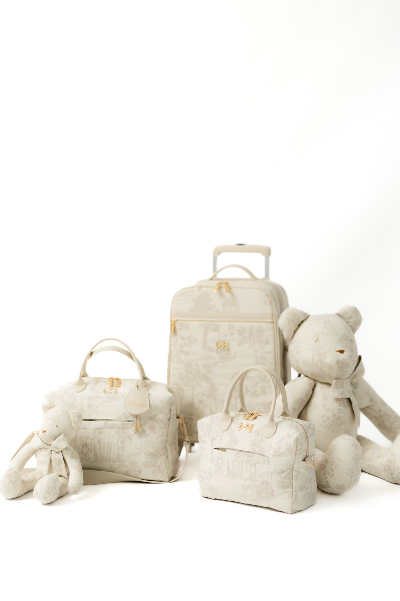 La Colección Origen, de Vilma Mirian, fue creada para marcar el inicio de la maternidad con elegancia y exclusividad. Confeccionada en sofisticado tejido jacquard, presenta nuestro estampado de autor con la identidad de la marca, creando un look único y atemporal. Los acabados delicados y los detalles dorados realzan aún más cada pieza. Ligeros, impermeables y funcionales, los modelos son ideales para madres que buscan estilo y practicidad desde los primeros momentos.